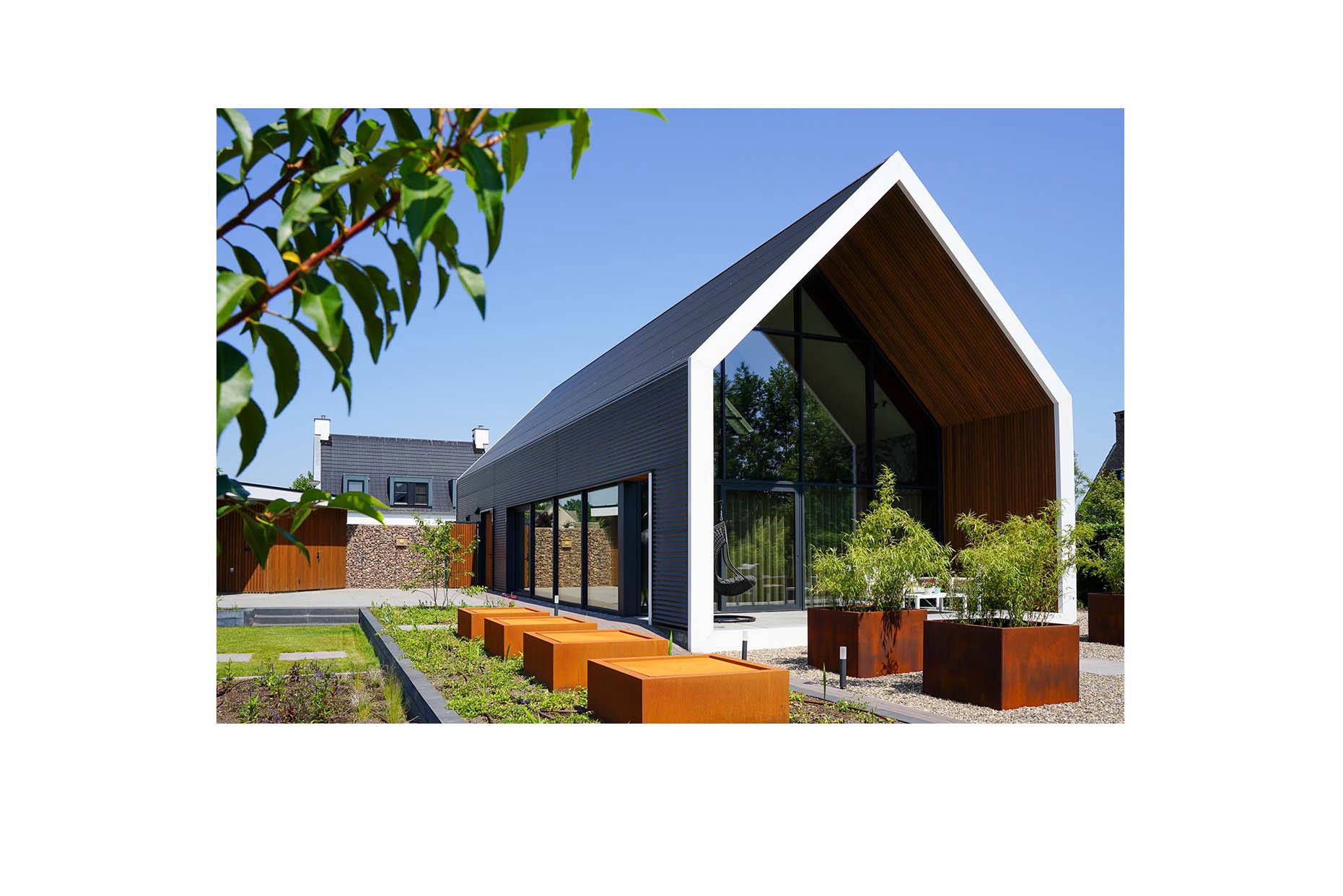 Deze moderne schuurwoning staat in Sevenum. En is ontworpen zoals een schuur vroeger ook gebouwd werd. Met een stalen constructie, sandwichpanelen en sinus golfplaat dak- en wandbekleding. En met binnenwanden en plafonds in een metalstudsyteem waarmee je optimale vrijheid voor de leidingen creëert.