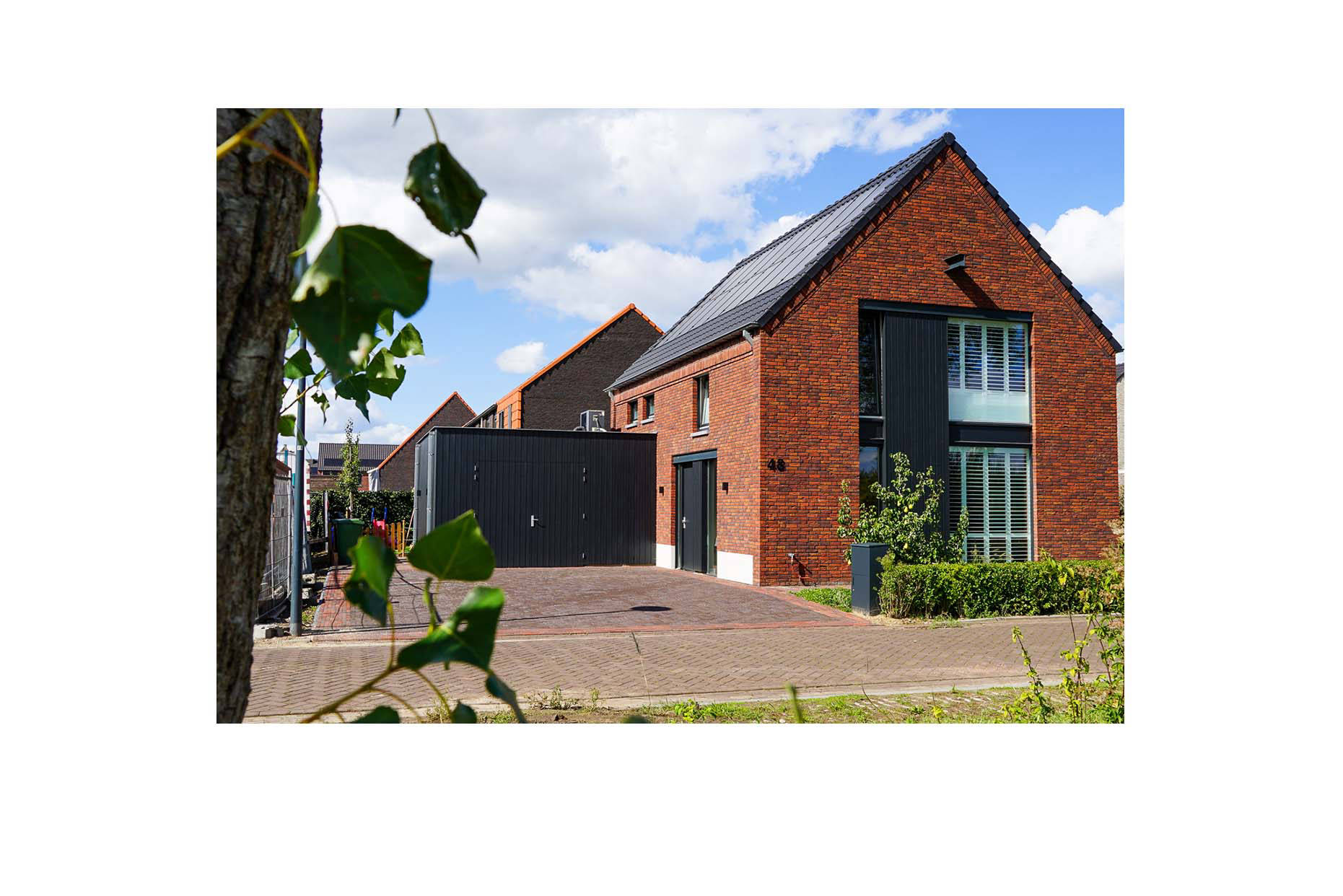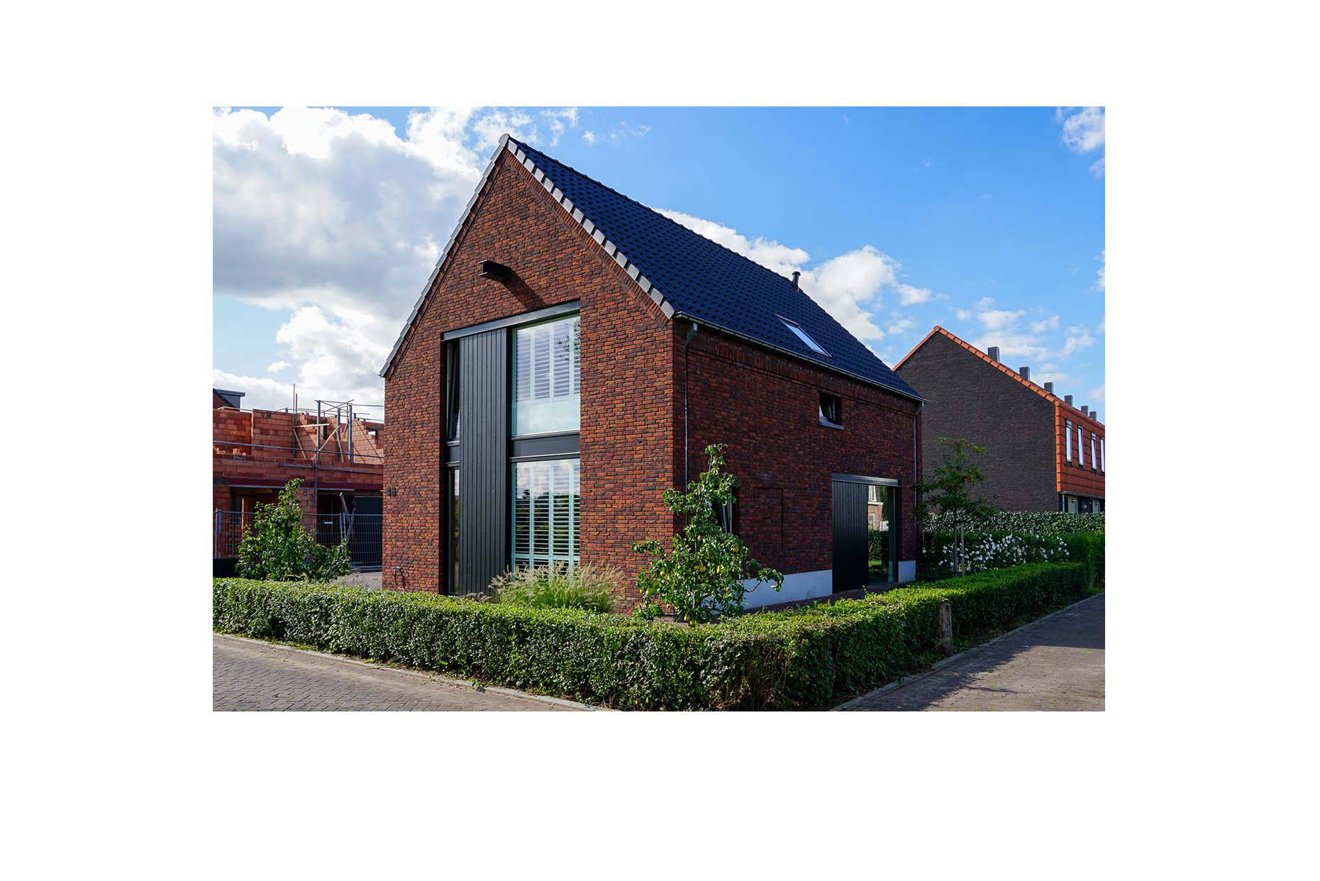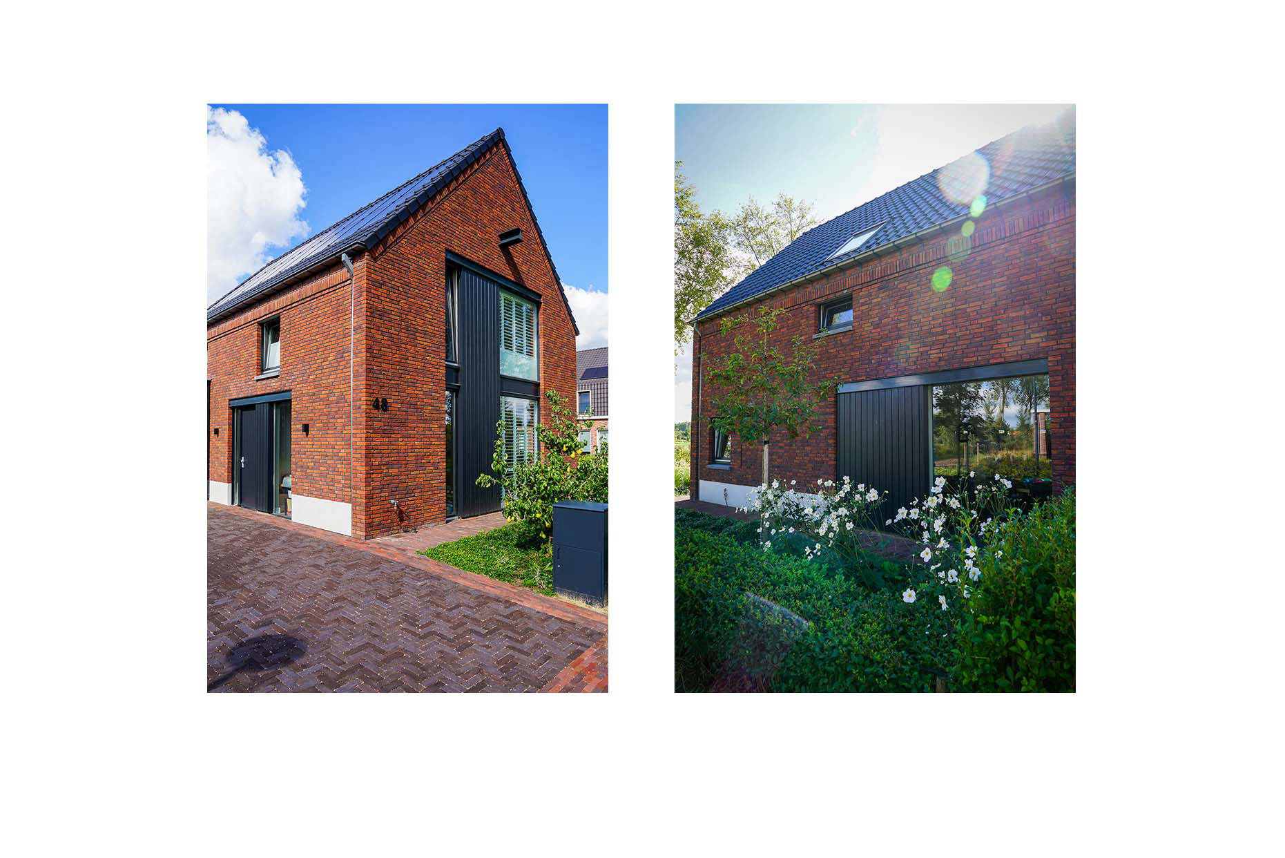 Denk aan een bierbrouwerij, begijnhof en voorraadschuren. En dan in een 2022-jasje. Deze woning is een vrije vertaling van een oude smidse; de voormalig werkplaats van de smid. Dat zie je terug in de metalen elementen in de gevel, het idee van schuurdeuren en de hijsbalk in de voorgevel.
